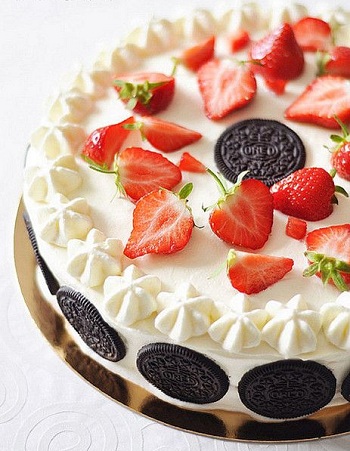 8.装饰上新鲜的水果和奥利奥饼干即可。