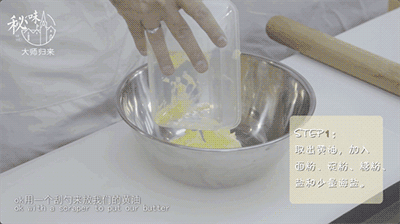 Step1 取出黄油,加入面粉。淀粉、糖粉、盐和少量海盐;