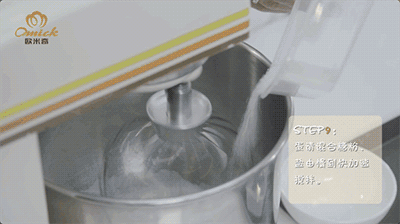 Step9 蛋清混合糖粉、盐由慢到快加速搅拌;