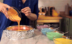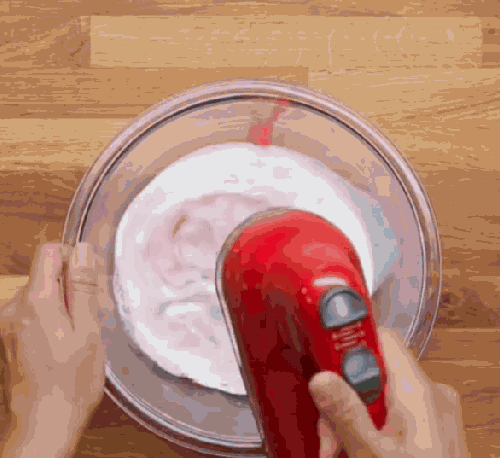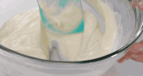 所谓翻拌是用刮刀从底部划弧往上拌,从下往上捞。翻拌手法多用于蛋糕糊量比较大的时候使用,当蛋糕糊量大,不容易消泡,但是不容易拌匀的时候,翻拌能让让面糊更均匀。